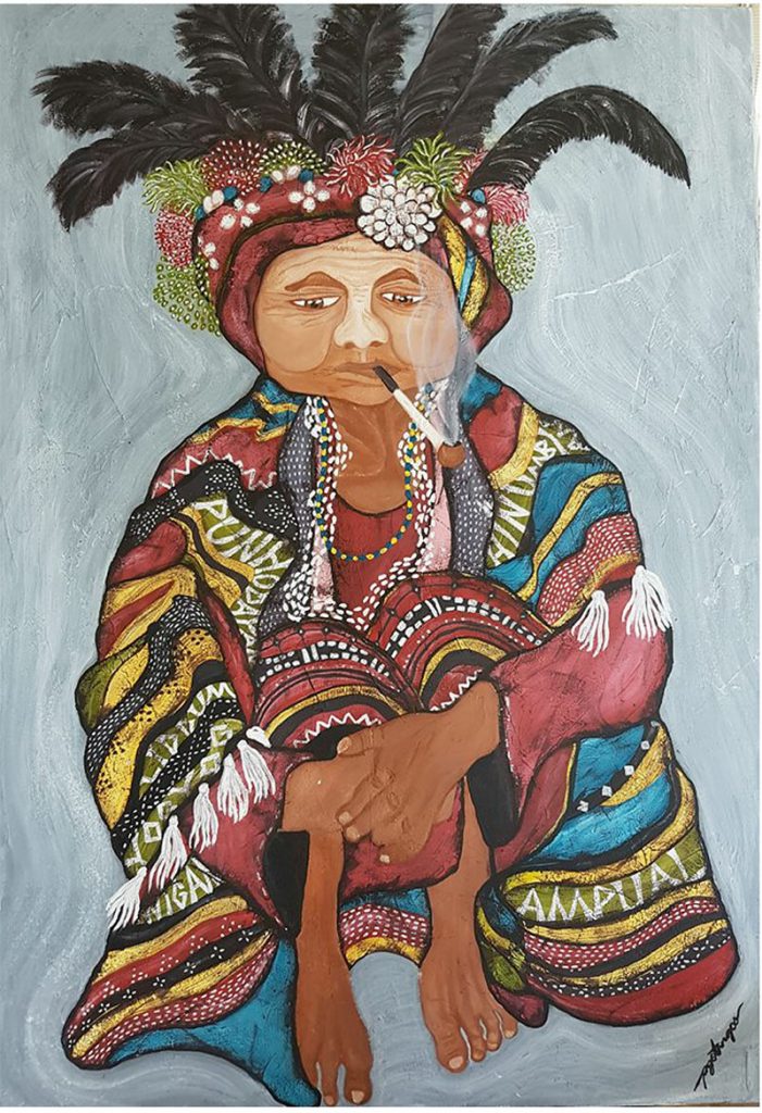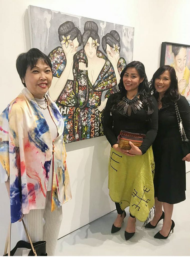 “THE Katutubo series is a tribute to all Filipino Indigenous women. The series aim is to encourage the audience to learn more about their culture, traditions, and mythology. Most pieces have words written on the clothing,” explained Pamela Gotangco Hupp (FWN100™ Global 2018) about her Katutubo Tribute to Filipino Indigenous Women. “The words could be names of deities, legends, or myths from an indigenous group,” she continued. By searching for the words online, art connoisseurs can learn more about the meaning of the words.