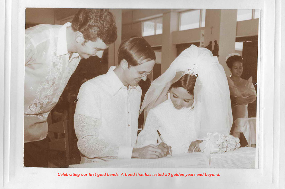 James and I are happy that our most precious treasures — David and his wife Elisa; Ligaya and her husband Steve are now on their way towards 50 years, albeit many more years, and are continually filling our treasure trove of memories.