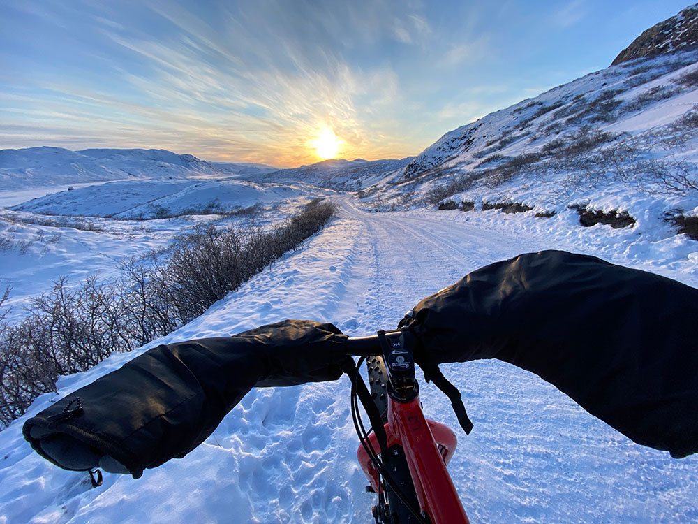 One of the toughest moments during the journey involved getting up mountain passes. For sure, pushing a 13kg fat bike with oversized tires, while carrying a 6kg pack and breathing through a balaclava is an exhausting job! Once on top, however, we would always be rewarded with breath-taking views. And from those heights, the downhills were just formidable, a much-deserved reward after the long and hard slogs. Descending a snowy trail at full speed on a fat bike with towering mountains all around in the remote wilderness of Greenland, made me feel more alive than I had ever felt in a long time.